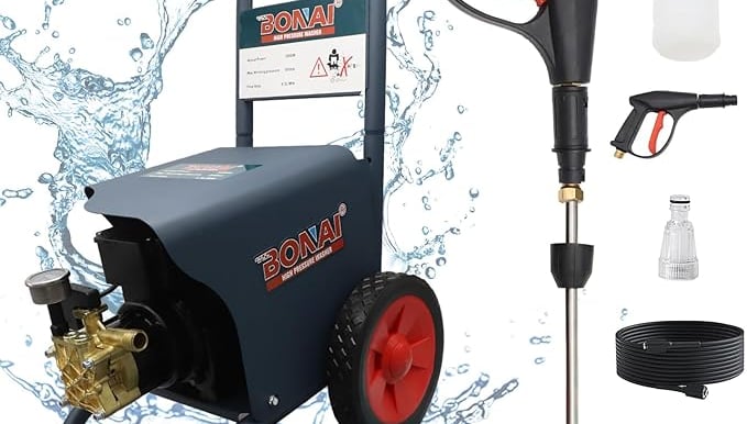 Efficiently removes dirt and grime from surfaces with its high-pressure water jet technology.